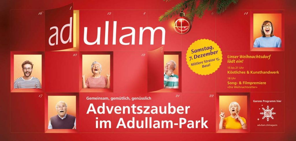 Den Abschluss des Jahres machte der Adventszauber. Zusätzlich zum bisherigen Weihnachtsprogramm, fand 2024 erstmals ein stimmungsvoller Weihnachtsmarkt mit Angeboten für Gross und Klein im Adullam-Park in Basel statt.